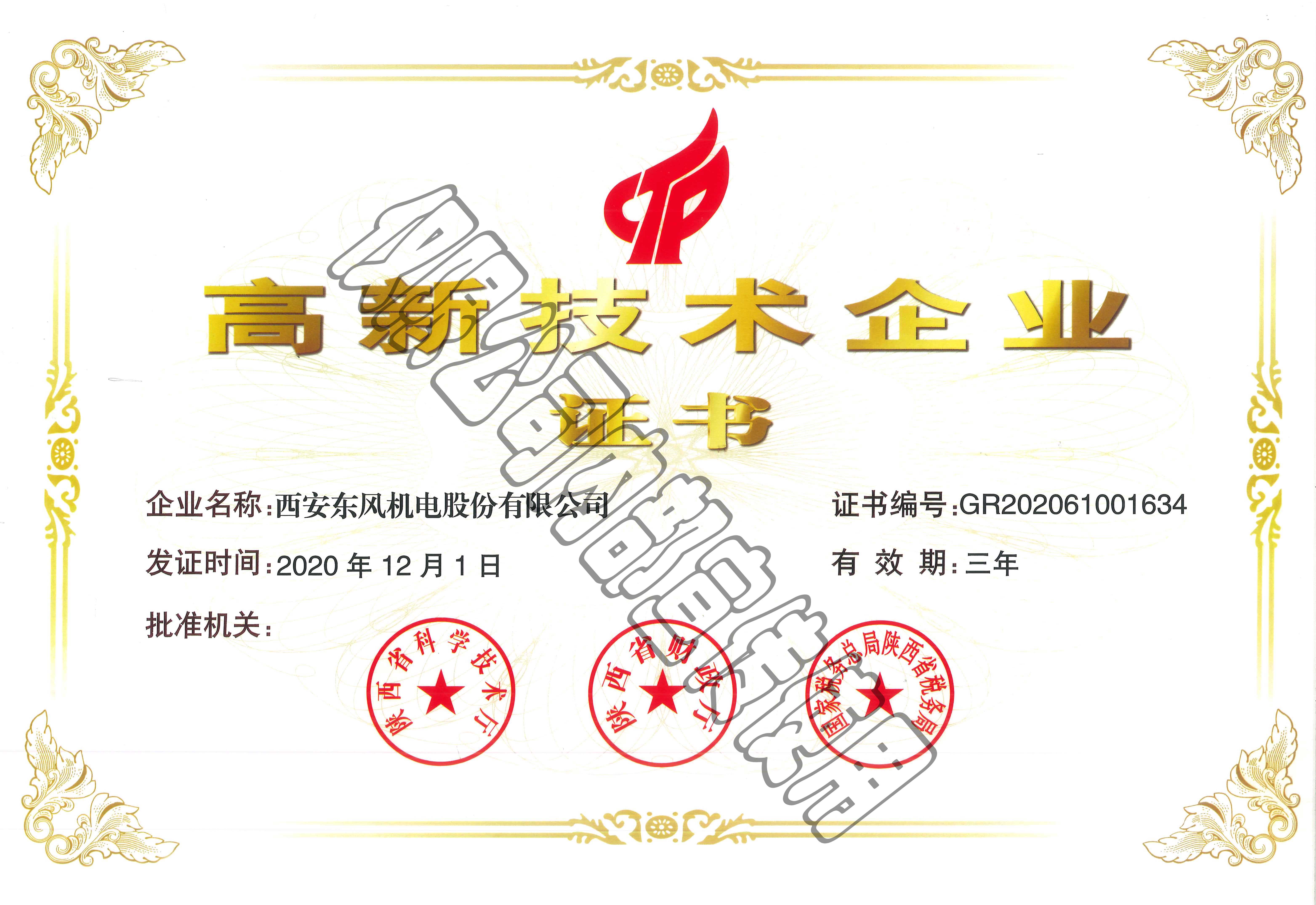 高新技術(shù)企業(yè)認(rèn)定證書