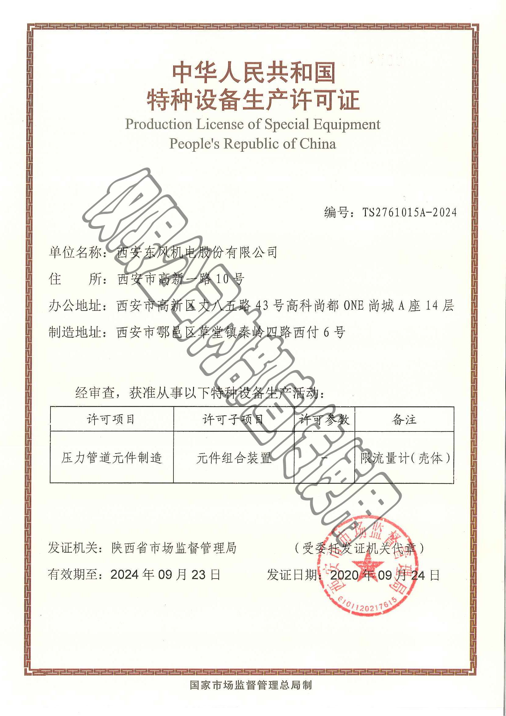 特種設(shè)備生產(chǎn)許可證