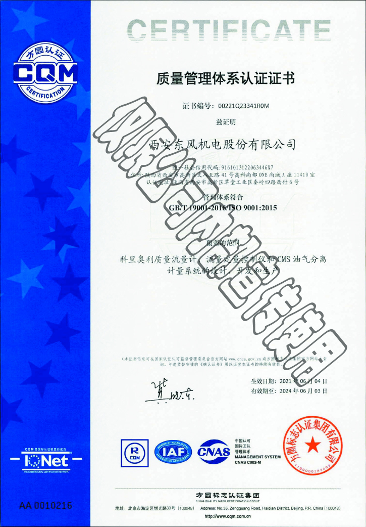 質(zhì)量管理體系認(rèn)證證書
