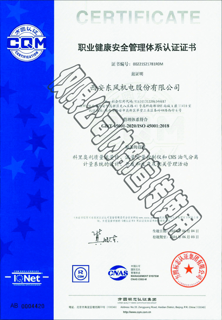 職業(yè)健康安全管理體系認(rèn)證證書